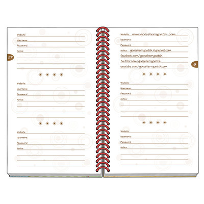No more slips of paper with passwords jotted down! Cheery artwork makes organizing your websites fun... a real time-saver too. Softcover, spiral bound. (7" x 4")