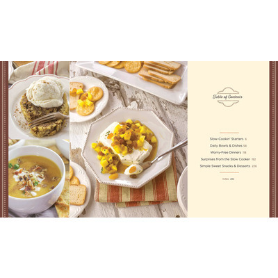 Need something substantial for the kids to snack on before soccer practice or piano lessons? With recipes like Family Favorite Party Mix, Savory Parmesan Crunch Mix or Slow-Cooked Scrumptious Salsa, your slow cooker will have yummy before-dinner snacks ready to go. The best meal is a simple meal. With easy-to-fix, hearty and delicious soup, stew and side recipes like Ham & Potato Soup, Zucchini Parmesan or Hearty Carrot Soup, you might be able to sneak in a few vegetables and can rest assured everyone is full and satisfied the rest of the night. With fix-it and forget-it dinners, it’s easy to get a wholesome meal on the table with worry-free recipes like French-Country Chicken, Savory Merlot Roast and Cheddar Cheese Strata. Surprise your kiddos and top dinner off with amazing desserts like Apple-Peanut Crumble and Fudgy Pudding Cake. With a special surprise chapter, you’ll never have the dinnertime blues. We’ve added some unexpected ways to cook or bake in your slow-cooker. With recipes like Apple-Cinnamon Bread in Jars, Delectable Lemon Cheesecake and Bacon-Wrapped Egg Cups you’ll easily add a little “yum!” and fun to any weeknight meal!